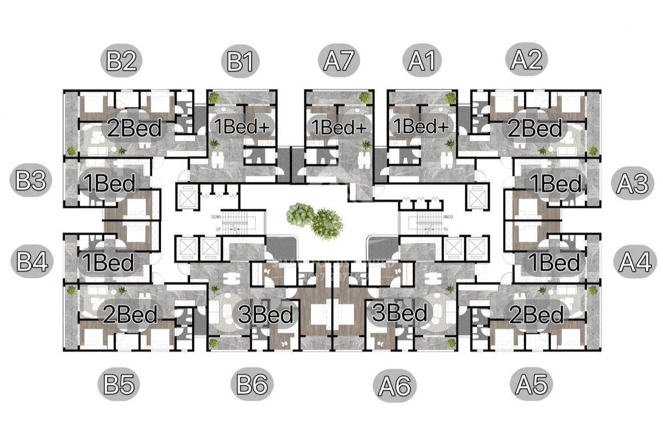 - Units per Floor: 6–7 apartments per floor