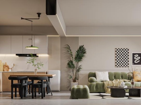 Open-plan living and dining area